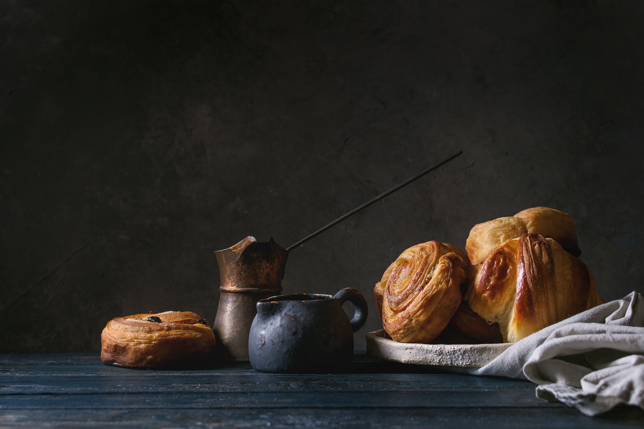 Il piacere di un buon caffè. di una spremuta d’arancia fresca appena spremuta e dei cornetti appena sfornati.